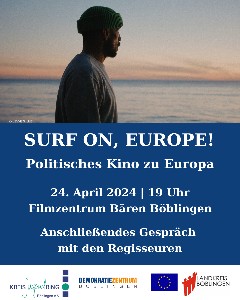 Mittwoch, 24. April 2024: Politisches Kino ,,Surf on, Europe!'' mit dem Demokratiezentrum und Kreisjugendring im Bärenkino Böblingen