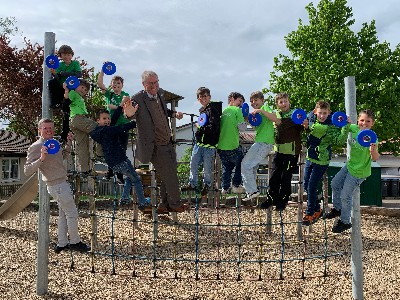 Die gemeinsame Initiative der Stabsstelle Wirtschaft und Tourismus, der Zentralstelle und des Abfallwirtschaftsbetriebs vermittelte den über 130 Kindern der Klassen 1 bis 4 spielerisch die Themen Klimaschutz, Nachhaltigkeit und Europa. Die Kinder der Klassen 3 und 4 durften basteln und spielen. Die Klassen 1 und 2 bekamen das Malbuch ,,Der kleine Stern in Europa'' geschenkt. Ziel ist es, den Kindern mit spielerische Aktivitäten wie z.B. Europa-Frisbee, die Verbindung zwischen den europäischen Ländern im Alltag näherzubringen und welche Länder zu Europa gehören.