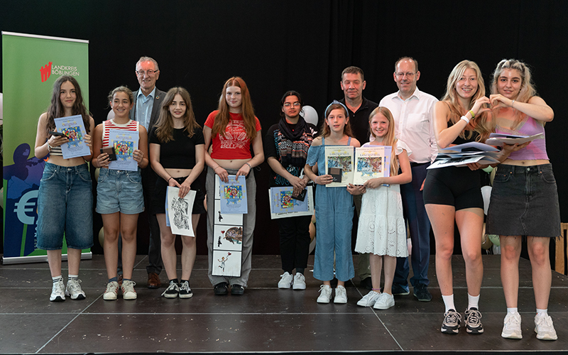 Der Europäische Wettbewerb fand dieses Jahr zum 72. Mal statt. Auch in diesem Jahr haben zahlreiche Schülerinnen und Schüler von elf Schulen aus dem Landkreis Böblingen am Europäischen Wettbewerb teilgenommen. Dieser Wettbewerb ermutigt junge Menschen, sich mit aktuellen politischen und gesellschaftlichen Themen auseinanderzusetzen und dient als Sprachrohr für ihre Ideen und Meinungen. Unter dem Motto „Europa? Aber sicher!“ setzten sich die Kinder und Jugendlichen kreativ mit der Zukunft Europas auseinander. Sie zeigten in Kunst und Kultur die vielfältige und soziale Gesellschaft unseres europäischen Lebensstils auf. Insgesamt wurden 105 Ortspreise, 5 Landespreise, 10 Landespreise mit Bundespreisnominierung verliehen. Landrat Roland Bernhard, Oberbürgermeister Dr. Vöhringer und Oberbürgermeister Dr. Stefan Belz gratulierten herzlich zum Erfolg der Schülerinnen und Schüler und waren beeindruckt von ihrem Engagement und ihrer Kreativität.