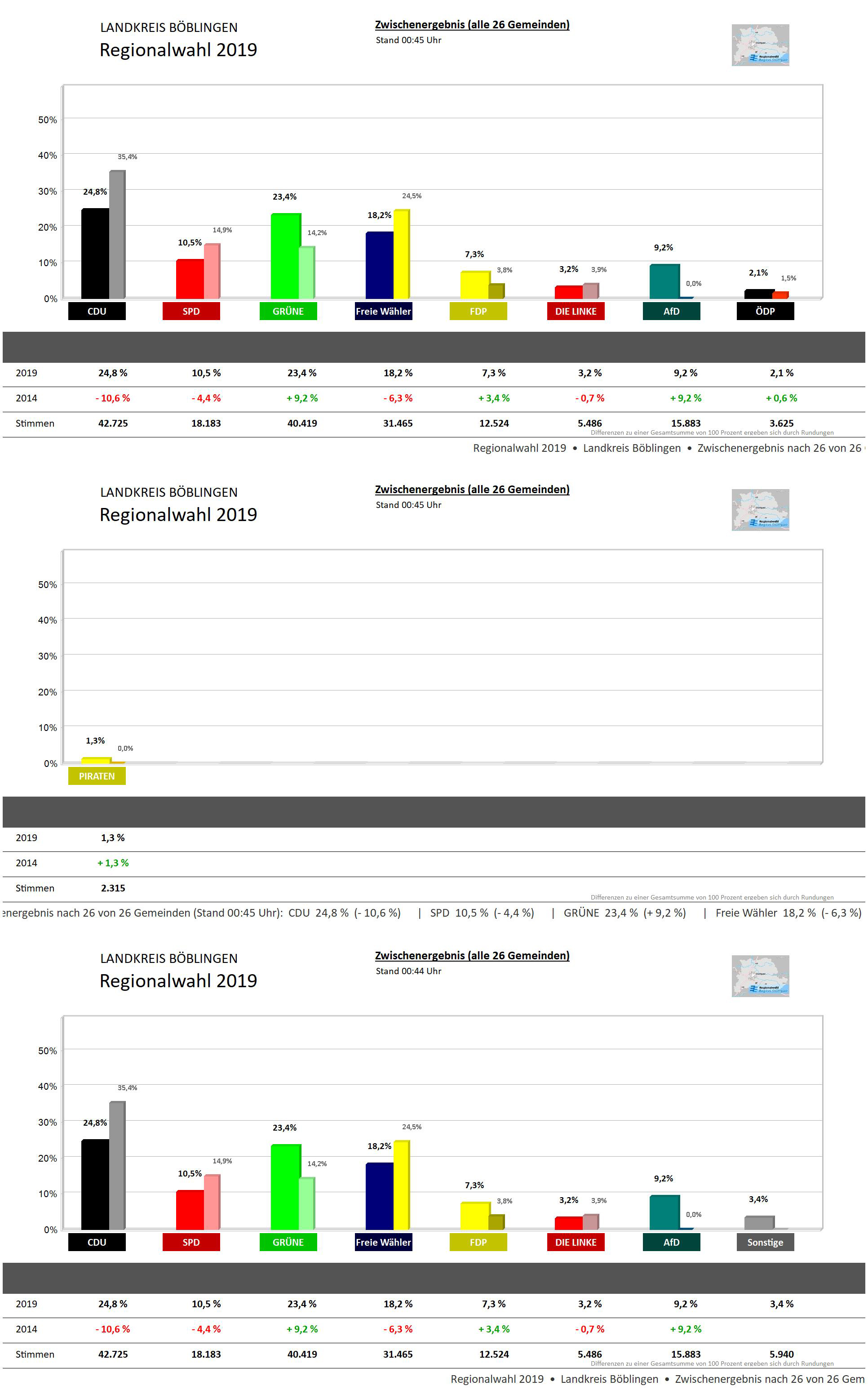 Eine Übersicht über das vorläufige Wahlergebnis für die Wahlkreise 5 Böblingen und 6 Leonberg sowie den Landkreis Böblingen können Sie hier abrufen. (Fehlerhinweis: Die Ergebnisse der 5 Wahlbezirke aus Holzgerlingen werden fälschlicherweise als "Gesamtergebnis" bezeichnet).