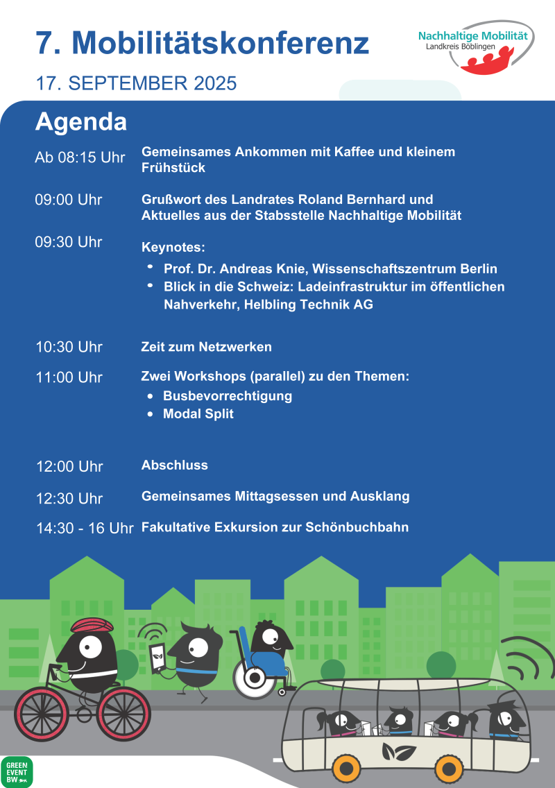 Die diesjährige Mobilitätskonferenz findet zu 7. Mal im Landratsamt Böblingen am 17. September 2025 statt. Es erwarten Sie spannende Vorträge sowie mehrere Workshops.