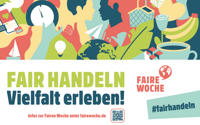 Am Freitag den 12. September, startet die Faire Woche unter dem Motto "FAIR HANDELN Vielfalt erleben". Das Motto soll deutlich machen, wie breit der Faire Handel aufgestellt ist, denn er vereint soziale Gerechtigkeit und den Schutz der ökologischen Vielfalt – zwei untrennbare Aspekte, die gemeinsam den Weg zu einer lebenswerten und nachhaltigen Zukunft ebnen.
