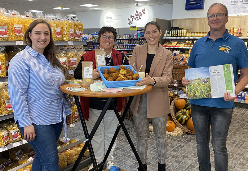 Auch Bio-Landwirt Frank Bäuerle vom Sonnhaldenhof in Iptingen, der die Hirse angebaut hat, war bei der Vorstellung vor Ort: „Es ist schön zu sehen, wie unsere Arbeit direkt bei den Menschen ankommt. Die Bio-Hirse ist ein robustes, nährstoffreiches Getreide – ideal für eine gesunde Ernährung.“