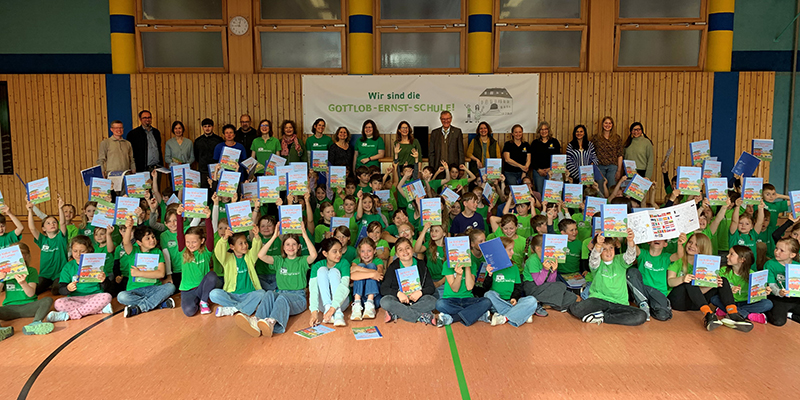 Die Schülerinnen und Schüler der Gottlob-Ernst-Schule (GES) Deckenpfronn erlebten gestern (6. Mai) einen spannenden Europatag. Mit kreativen und sportlichen Aktionen war Europa ganz nah. Als Auftakt begrüßten die Grundschülerinnen und Grundschüler mit einem mitreißenden Tanz und GES-Song die Gäste. Landrat Roland Bernhard, der mit Bürgermeister Daniel Gött und Schulleiterin Meike Wille den Tag eröffnete, war davon begeistert. Er fragte die Schülerinnen und Schüler, welche Länder zu Europa gehören und wer schon mal wohin gereist ist. Hände schnellten empor. Der Landrat betonte: „In Europa leben Menschen aus verschiedenen Ländern mit unterschiedlichen Sprachen. Sie arbeiten zusammen, um sich gegenseitig zu helfen und gemeinsam stark zu sein. Wir setzen uns zusammen dafür ein, dass wir in Frieden leben können. Europa bietet viele Chancen zum Beispiel durch Reisen und Leben in anderen Ländern. Wichtig ist, dass ihr Freunde von Europa seid“.