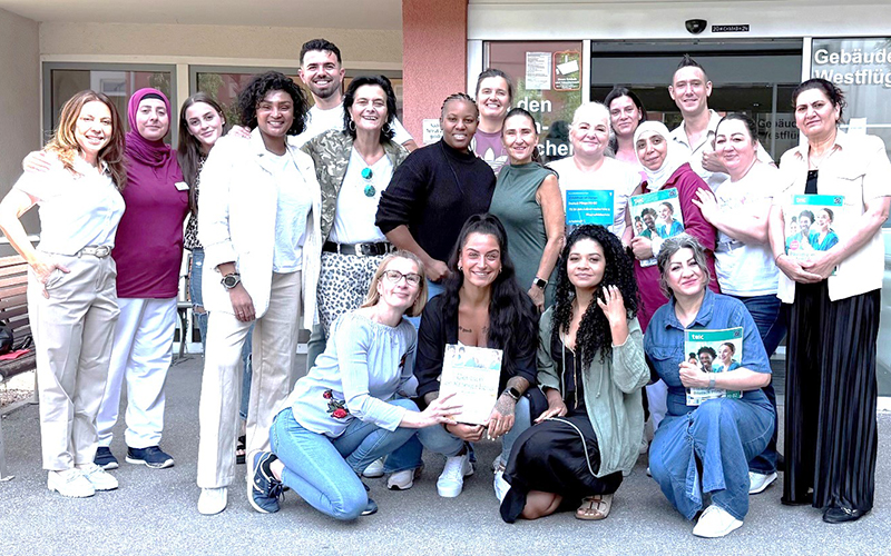 Die Clearingstelle Sprachförderung des Landratsamtes bietet erstmalig mit dem Sprachkursträger Internationaler Bund (IB) in der Böblinger Pflegeeinrichtung Evangelische Heimstiftung am Maienplatz arbeitsplatzbezogene Deutschkurse an. Dieses spezifische Deutschformat wird durch das Landessprachförderprogramm „VwV-Deutsch“ und den Landkreis finanziert. Es handelt es sich um einen berufsbegleitenden Teilzeit-B2-Sprachkurs für die internationalen Mitarbeitenden der Heimstiftung, der innerbetrieblich angeboten wird. Der Sprachkurs umfasst sowohl die fachsprachliche als auch die allgemeine sprachliche Förderung, die auf die spezifischen Bedürfnisse der Pflege zugeschnitten sind. Er ist ein wichtiger Baustein, um die Sprachkompetenzen zu verbessern sowie Pflege- und Betreuungsaufgaben im Arbeitsalltag zu erleichtern. Aufstiegs- sowie Ausbildungsperspektiven im Pflegebereich werden dadurch ermöglicht und anvisiert.