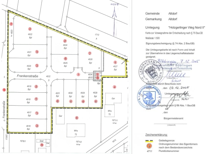 Ergebnis der Umlegung: die neuen Grundstücke