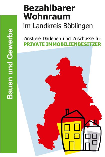 | Bezahlbarer WohnraumZinsfreie Darlehen und Zuschüsse für private Immobilienbesitzer, mehr... (PDF, 1,357 MiB) | |