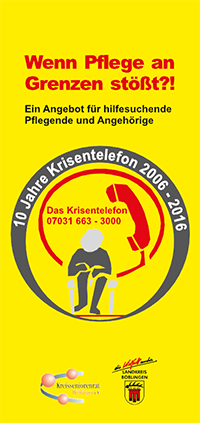 | Krisentelefon Sie befinden sich in einer schwierigen Pflegesituation und wissen nicht, an wen Sie sich wenden können, mehr.... (PDF, 364,8 KiB) |